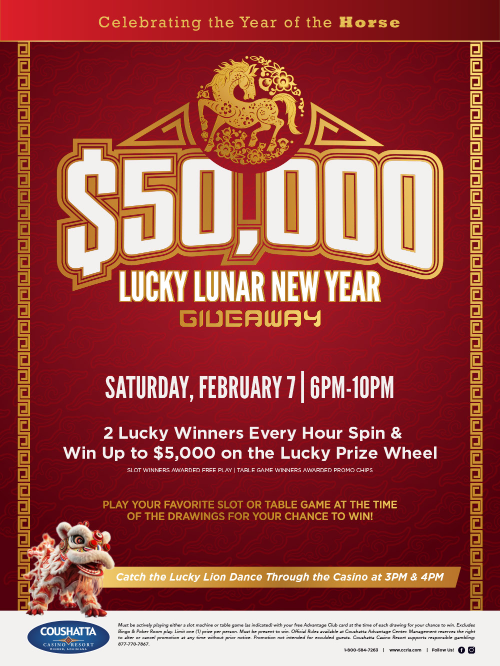 Catch the Lucky Lion Dance through the casino at 3pm & 4pm.