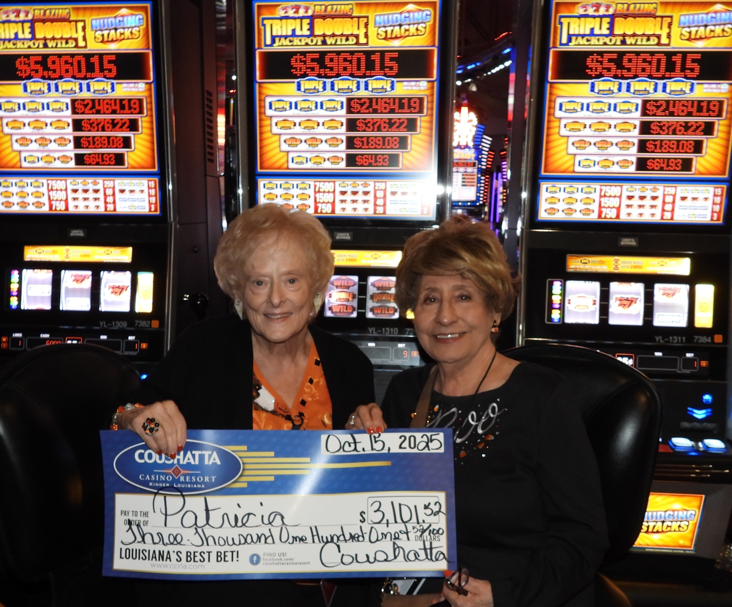 Congratulations to Patricia--on October 15, 2025 this lucky guest hit the jackpot while playing the Triple Double 777 Blazing slot game and won $3,101!