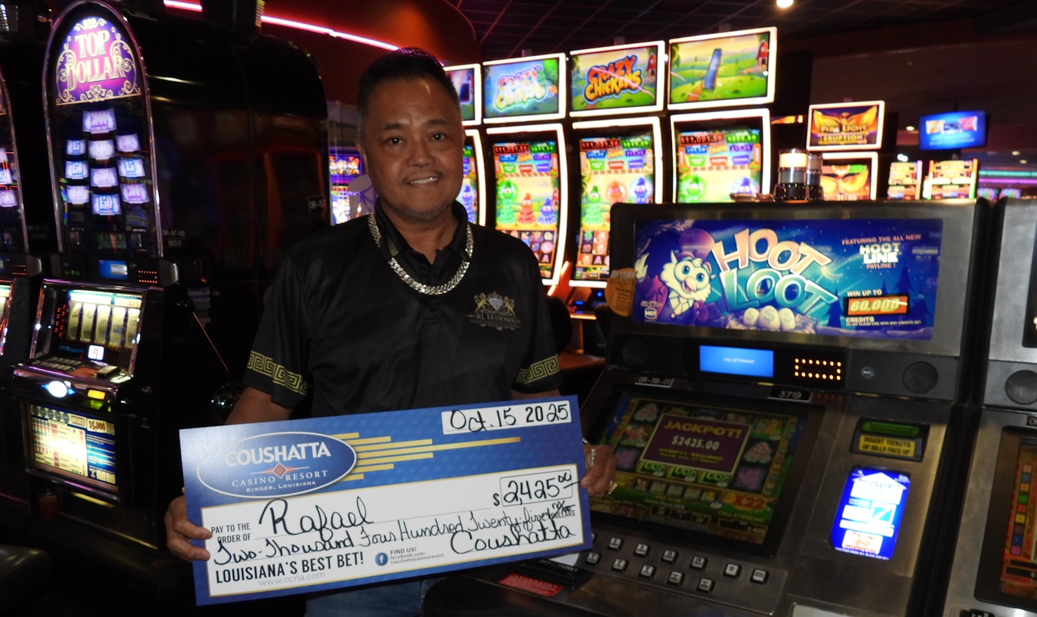 Congratulations to Rafael--on October 15, 2025 this lucky guest hit the jackpot while playing the Hoot Loot slot game and won $2,425!