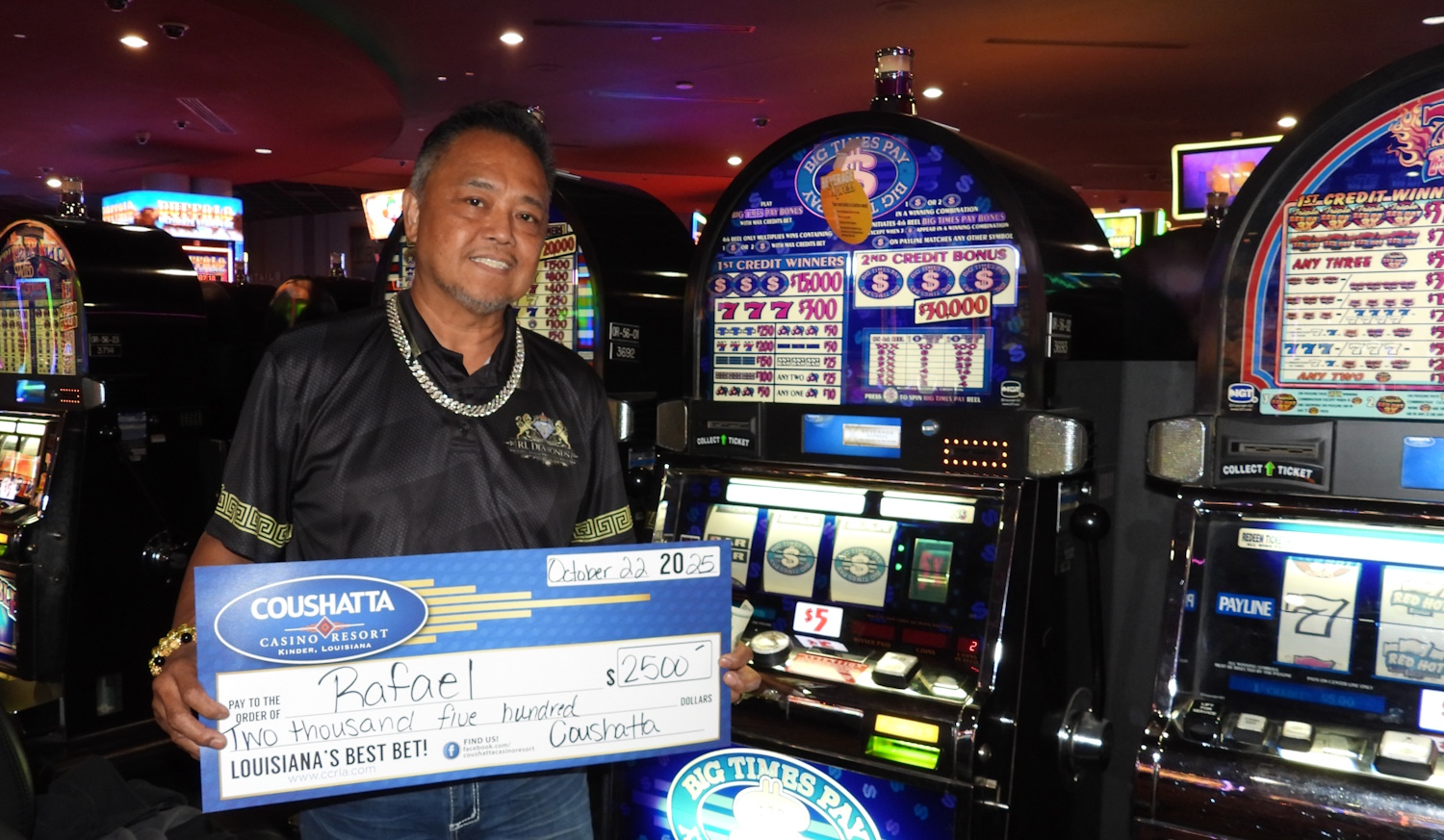 Congratulations to Rafael--on October 22, 2025 this lucky guest hit the jackpot while playing the Big Times Pay slot game and won $2,500!