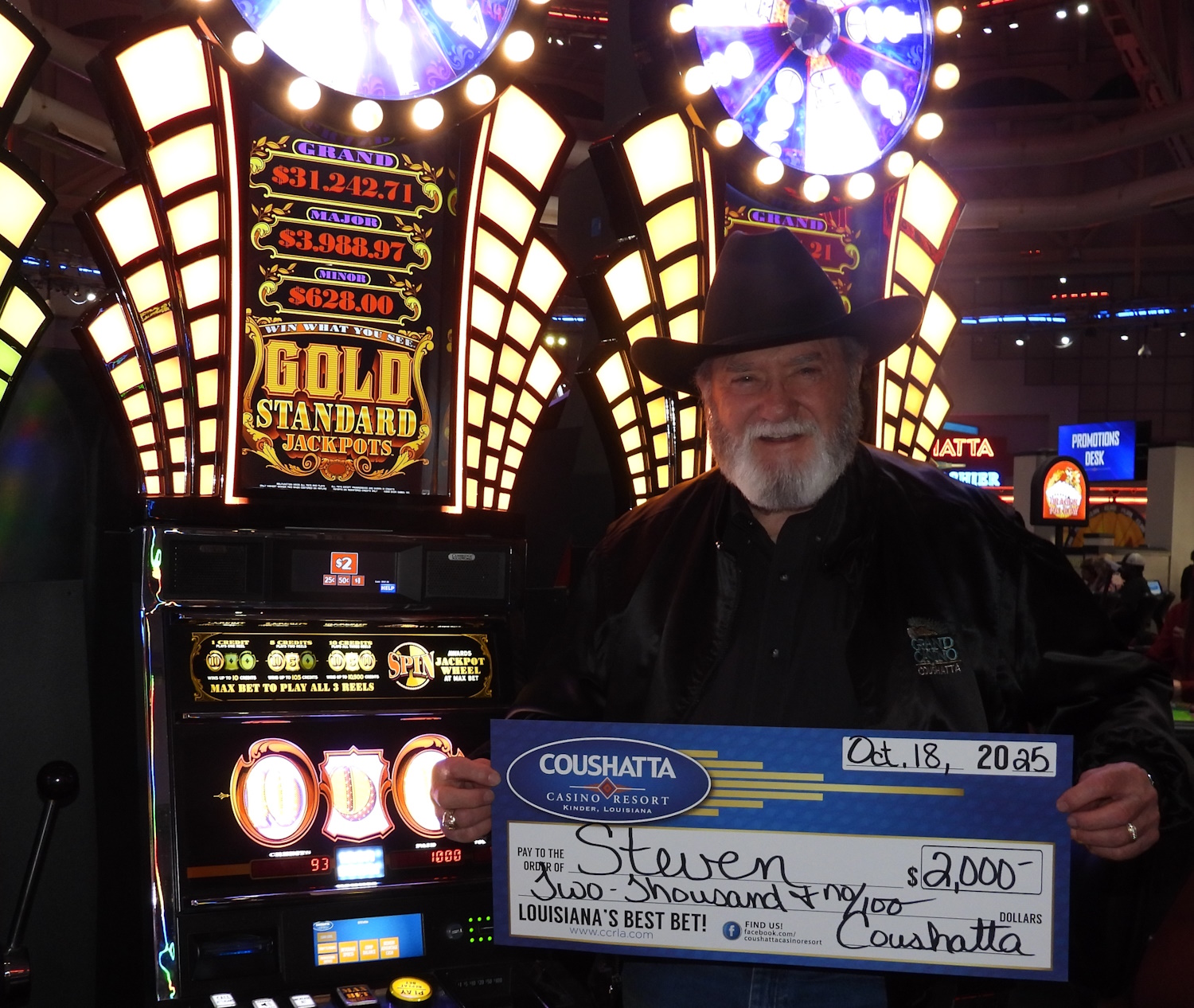 Congratulations to Steven--on October 18, 2025 this lucky guest hit the jackpot while playing the Gold Standard slot game and won $2,000!