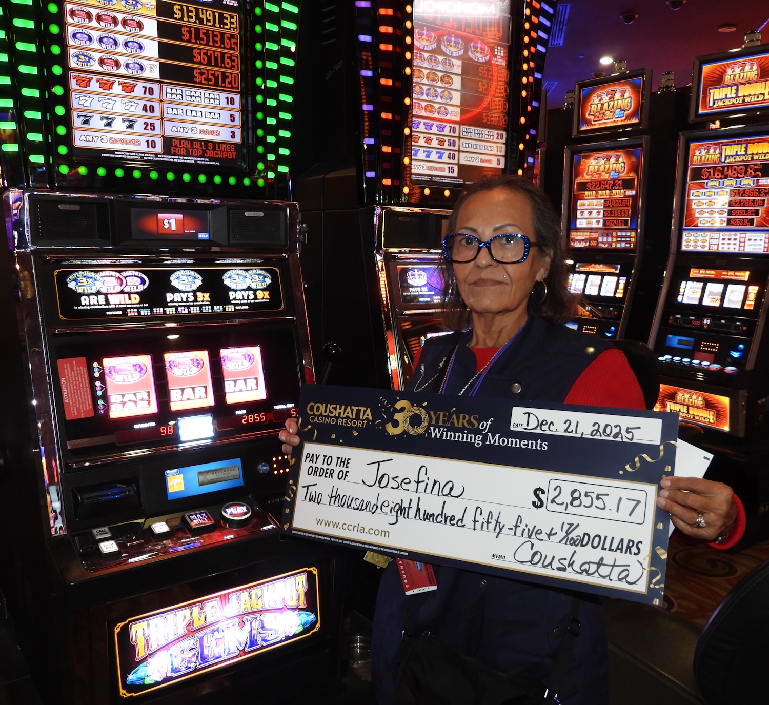 Congratulations to Josefina--on December 21, 2025 this lucky guest hit the jackpot while playing the Triple Jackpot Gems slot game and won $2,855!