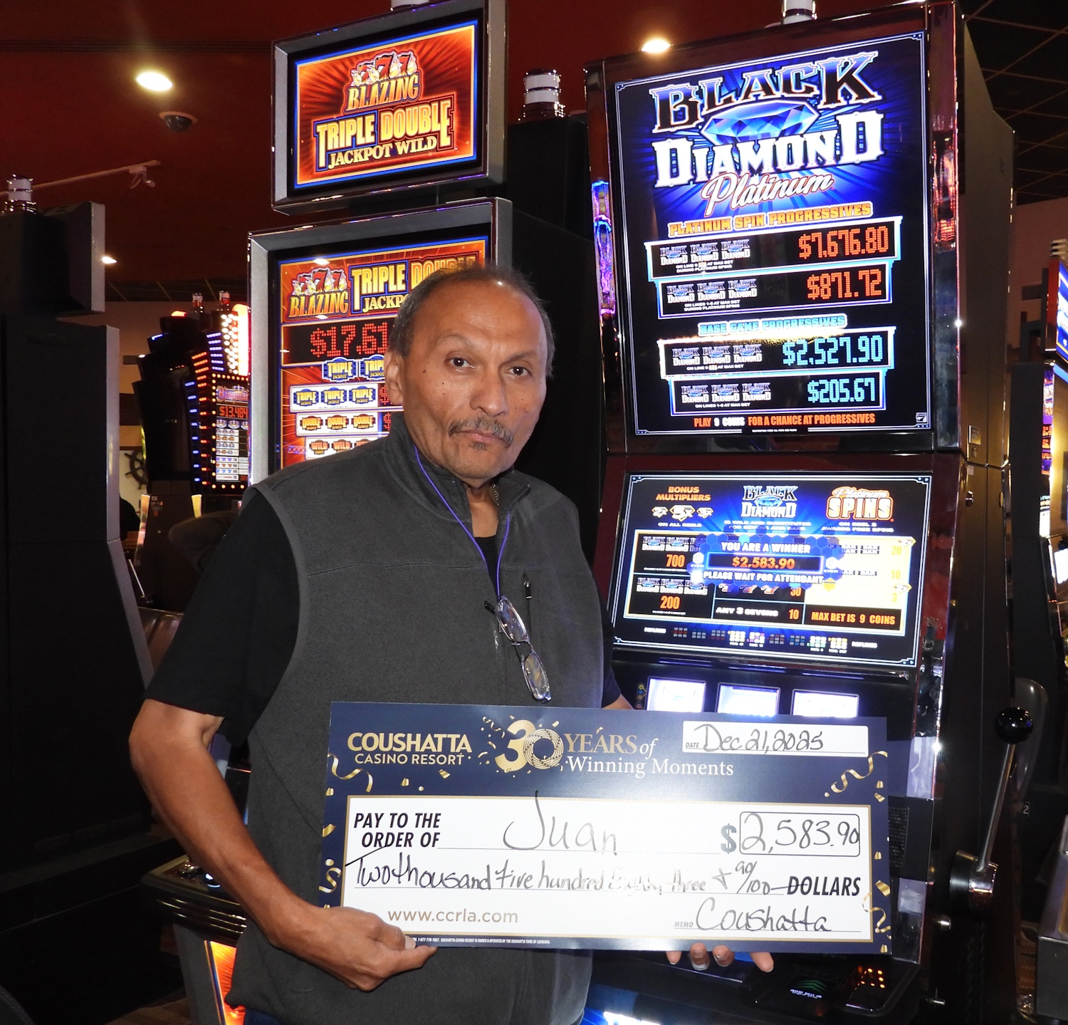Congratulations to Juan--on December 21, 2025 this lucky guest hit the jackpot while playing the Black Diamond Platinum slot game and won $2,583!