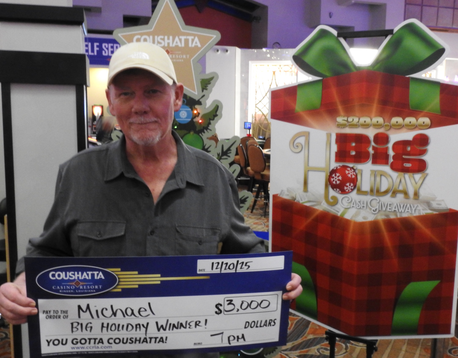 Congratulations to Michael--on December 20, 2025 this lucky guest hit the jackpot while playing in the $200,000 Big Holiday Cash Giveaway and won $3,000!