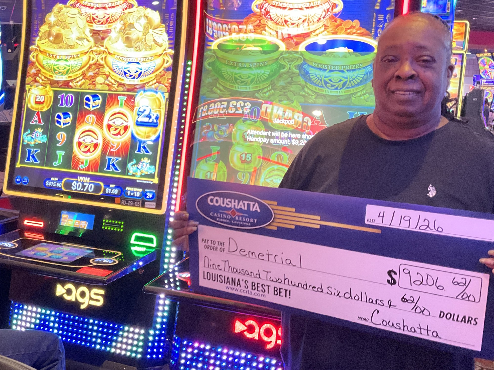 Congratulations to Demetrial--on April 19, 2026 this lucky guest hit the jackpot while playing the Triple Coin treasures slot game and won $9,207!