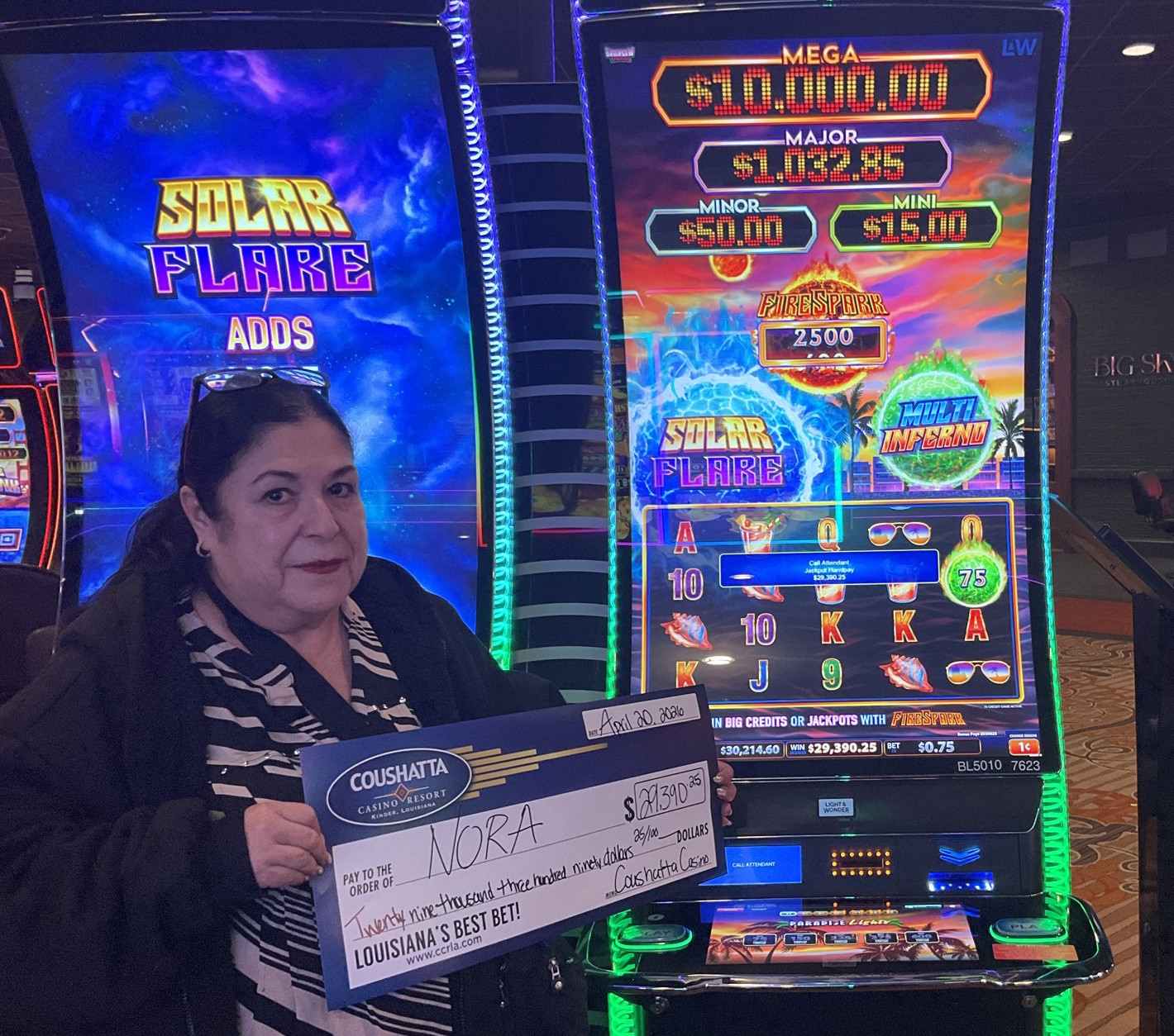 Congratulations to Nora--on April 20, 2026 this lucky guest hit the jackpot while playing the Super Nova Ultimate Fire Link slot game and won $29,390!