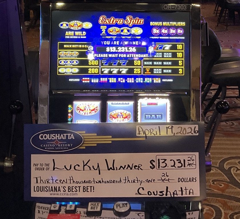 Congratulations to a Lucky Winner--on April 19, 2026 this guest hit the jackpot while playing the Triple Jackpot slot game and won $15,000!