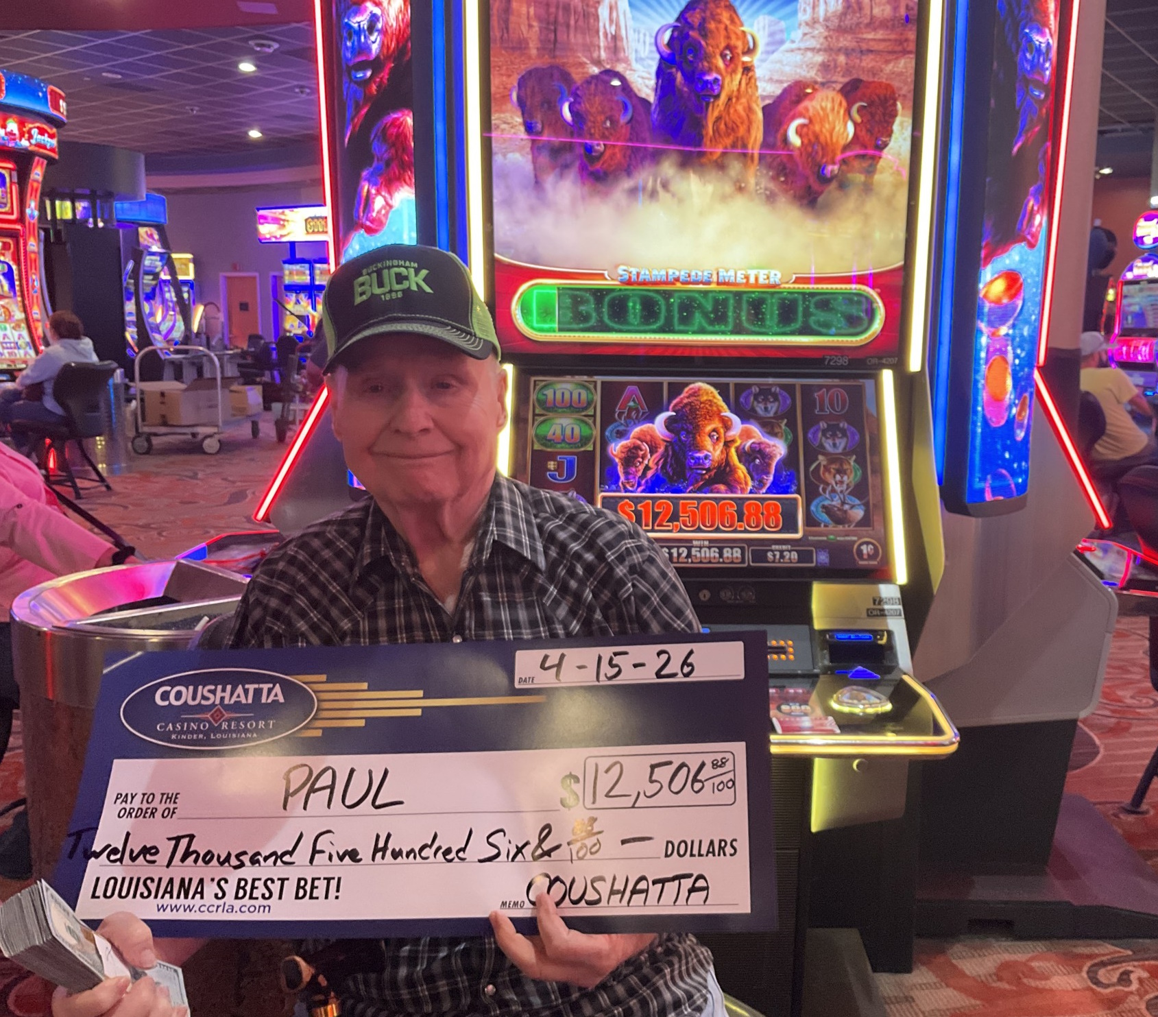 Congratulations to Paul--on April 15, 2026 this lucky guest hit the jackpot while playing the Buffalo Stampede slot game and won $12,507!