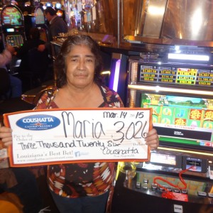 Congratulations to Maria from Texas––on March 14, this lucky guest hit the jackpot on a Titan Three Sixty slot game and won $3,026!