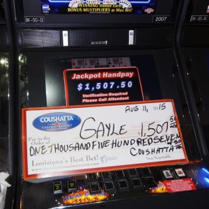 Congratulations to Gayle from Texas-–on August 11, this lucky guest hit the jackpot on a Ultimate Video Poker slot game and won $1,507!
