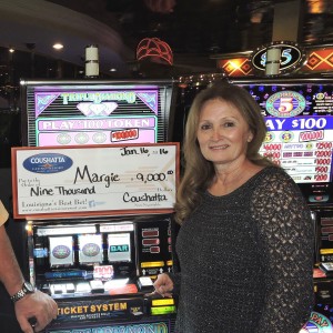 Congratulations to Margie from Texas-–on January16, this lucky guest hit the jackpot on a Triple Diamond slot game and won $9,000!