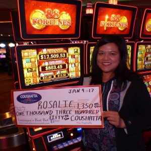 Congratulations to Rosalie from Texas-–on January 9, this lucky guest hit the jackpot on a Eighty-Eight Fortunes slot game and won $1,350!