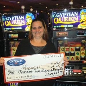 Congratulations to Michelle from Texas-–on October 23, this lucky guest hit the jackpot on a Egyptian Queen slot game and won $1,292!