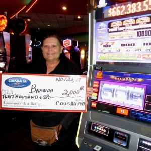 Congratulations to Brenda from Texas-–on November 23, this lucky guest hit the jackpot on a Monopoly Diamonds slot game and won $2,000!