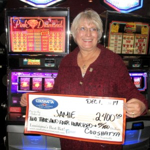 Congratulations to Jamie from Texas-–on December 1, this lucky guest hit the jackpot on a Pink Diamond slot game and won $2,400!