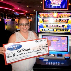 Congratulations to Katrina from Louisiana-–on May 31, this lucky guest hit the jackpot on a Quick Fire slot game and won $2,400!