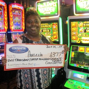 Congratulations to Angelia from Texas-–on July 15, this lucky guest hit the jackpot on a DaJi DaLi Jade slot game and won $1,377!