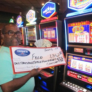 Congratulations to Fred from Texas-–on July 1, this lucky guest hit the jackpot on a Triple Red Hot Sevens slot game and won $1,352!