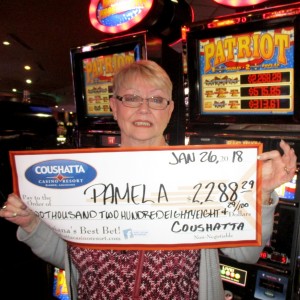 Congratulations to Pamela from Texas-–on January 26, this lucky guest hit the jackpot on a Patriot slot game and won $2,288!