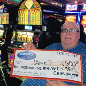 Congratulations to James from Texas-–on February 17, this lucky guest hit the jackpot on a Tabasco slot game and won $1,600!