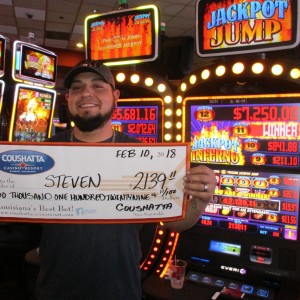 Congratulations to Steven from Texas-–on February 10, this lucky guest hit the jackpot on a Jackpot Inferno slot game and won $2,139!