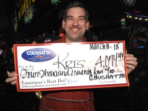Congratulations to Kris from Texas-–on March 10, this lucky guest hit the jackpot on a Three Card Poker table game and won $4,074!