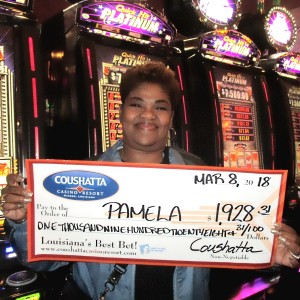 Congratulations to Pamela from Texas-–on March 8, this lucky guest hit the jackpot on a Quick Hit Platinum slot game and won $1,928!