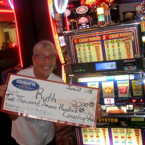 Congratulations to Ruth from Texas-–on June 21, this lucky guest hit the jackpot on a Triple Red White and Blue slot game and won $2,700!
