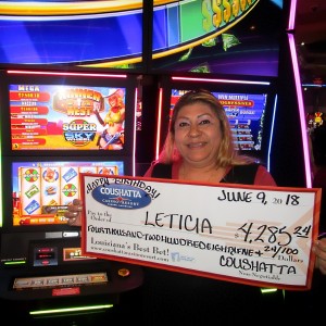 Congratulations to Leticia from Texas-–on June 9, this lucky guest hit the jackpot on a Super Feature Sunset King slot game and won $3,677!