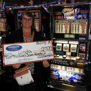 Congratulations to Linda from Texas-–on June 7, this lucky guest hit the jackpot on a Wild Triple Strike slot game and won $2,700!