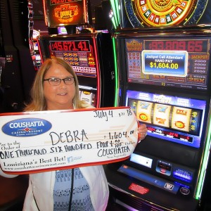 Congratulations to Debra from Oklahoma-–on July 4, this lucky guest hit the jackpot on a Mayan Wheel slot game and won $1,604!