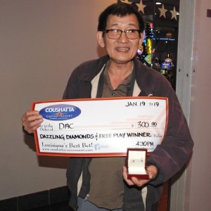 Congratulations to Dac from Texas-–on January 19, this lucky guest won 1-Carat Diamond Earrings and $300 in free slot play in Coushatta's 24th-Carat Dazzling Diamonds Giveaway!
