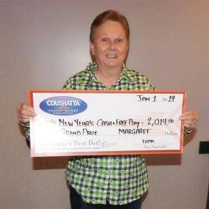 Congratulations to Margaret from Louisiana-–on January 1, this lucky guest won $2019 in Coushatta's $2019 New Year's Day Giveaway!