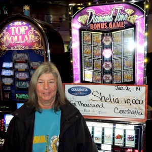 Congratulations to Shelia from Louisiana-–on January 26, this lucky guest hit the jackpot on a Diamond Time slot game and won $10,000!