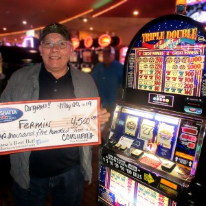 Congratulations to Fermin from Texas-–on May 24, this lucky guest hit the jackpot on a Triple Double Red White and Blue slot game and won $4,500!