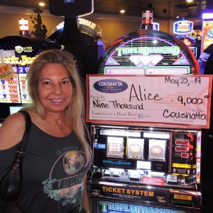 Congratulations to Alice from Texas-–on May 25, this lucky guest hit the jackpot on a Triple Diamond slot game and won $9,000!
