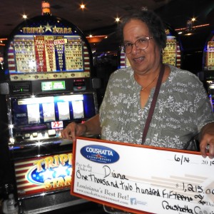 Congratulations to Diana from Texas-–on June 14, this lucky guest hit the jackpot on a Triple Stars slot game and won $1,215!