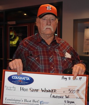 Congratulations to Lawrence from Texas! On August 8, this lucky guest won $500 on Coushatta's $50,000 Summer Fun Hot Seat Giveaway!