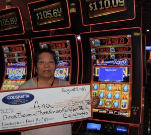 Congratulations to Ana from Texas--on August 7, 2021 this lucky guest hit the jackpot while playing the Dragon Rising slot game and won $3,349!!!