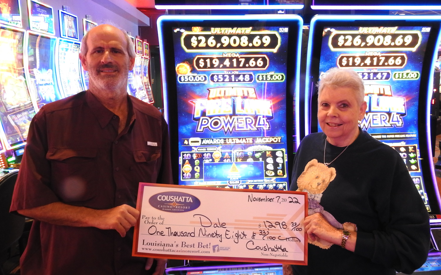 Congratulations to Dale--on November 7, 2022 this lucky guest hit the jackpot while playing the Ultimate Fire Link slot game and won $1,298!
