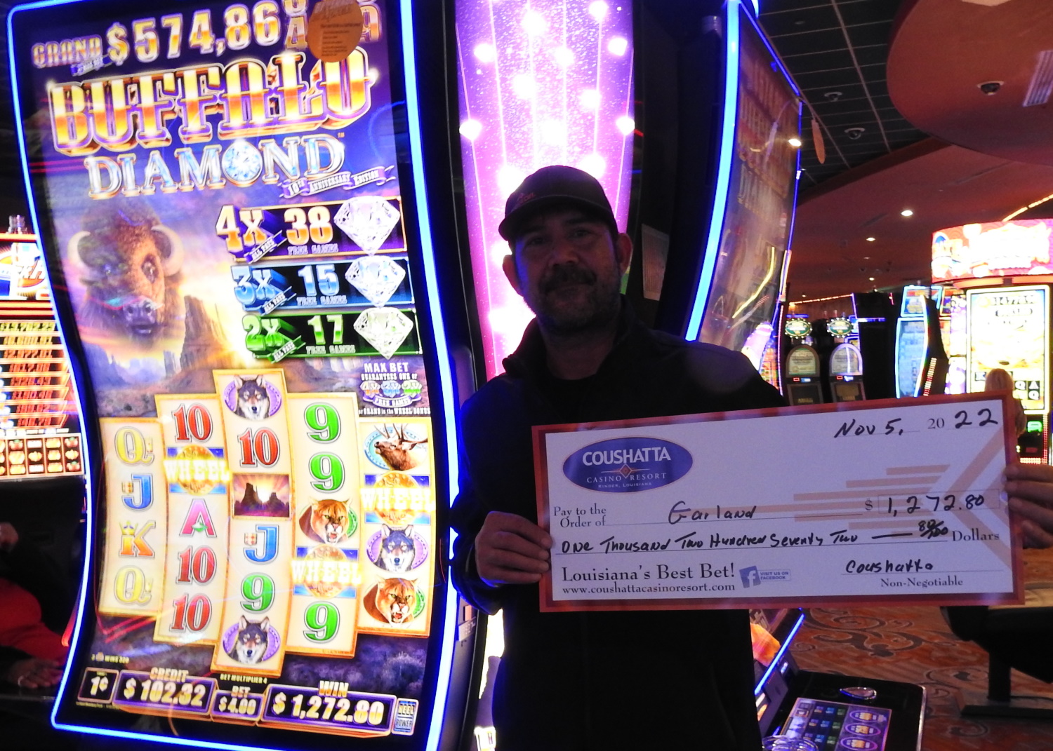 Congratulations to Garland--on November 5, 2022 this lucky guest hit the jackpot while playing the Buffalo Diamond slot game and won $1,272!