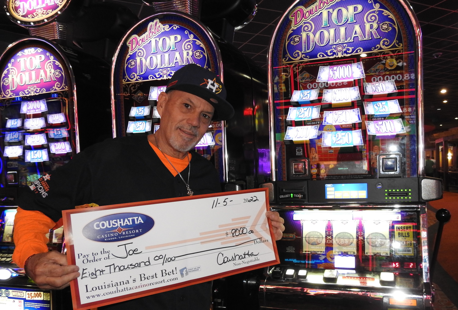 Congratulations to Joe--on November 5, 2022 this lucky guest hit the jackpot while playing the Double Top Dollar slot game and won $8,000!