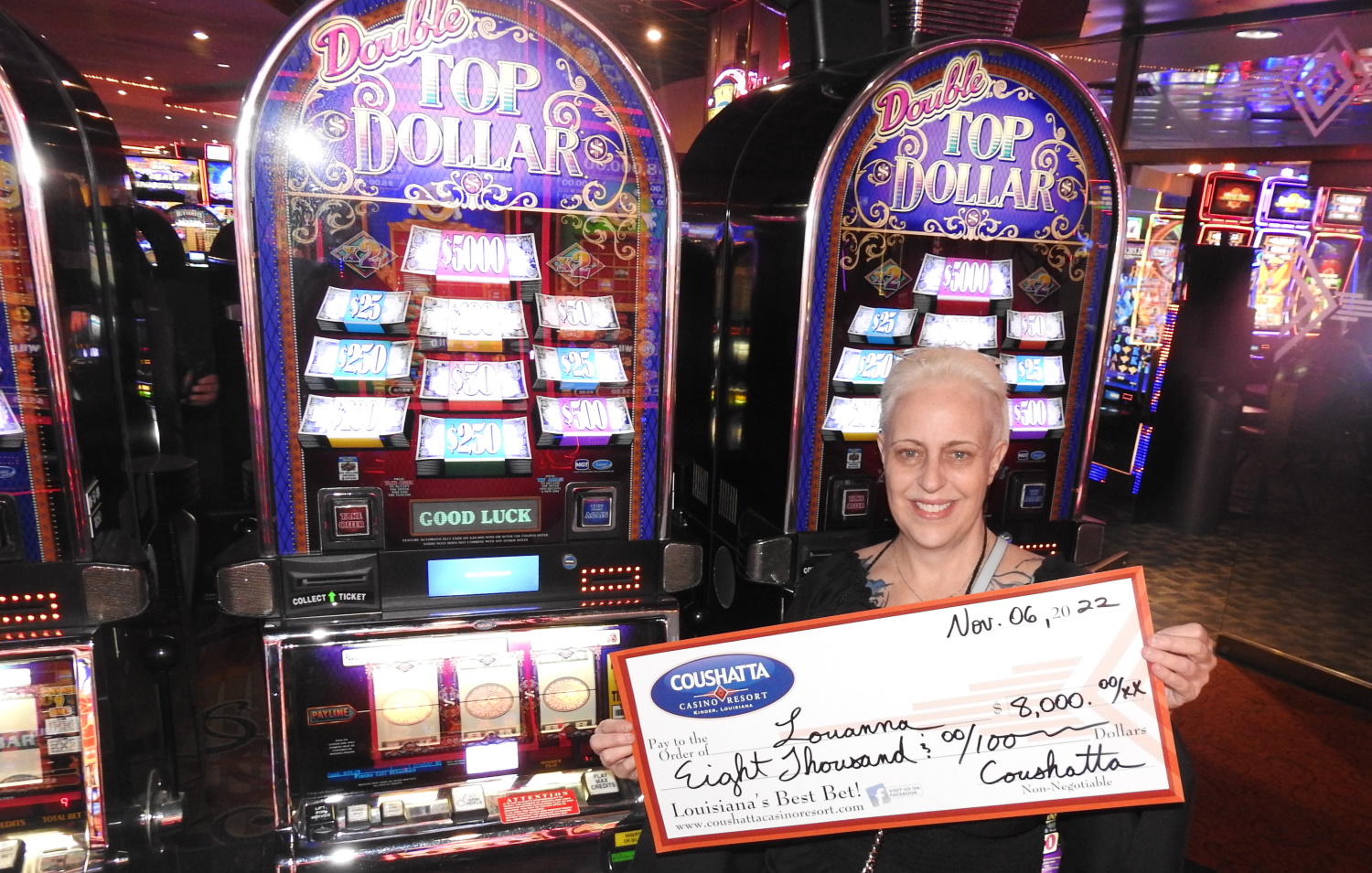 Congratulations to Louanna--on November 6, 2022 this lucky guest hit the jackpot while playing the Double Top Dollar slot game and won $8,000!