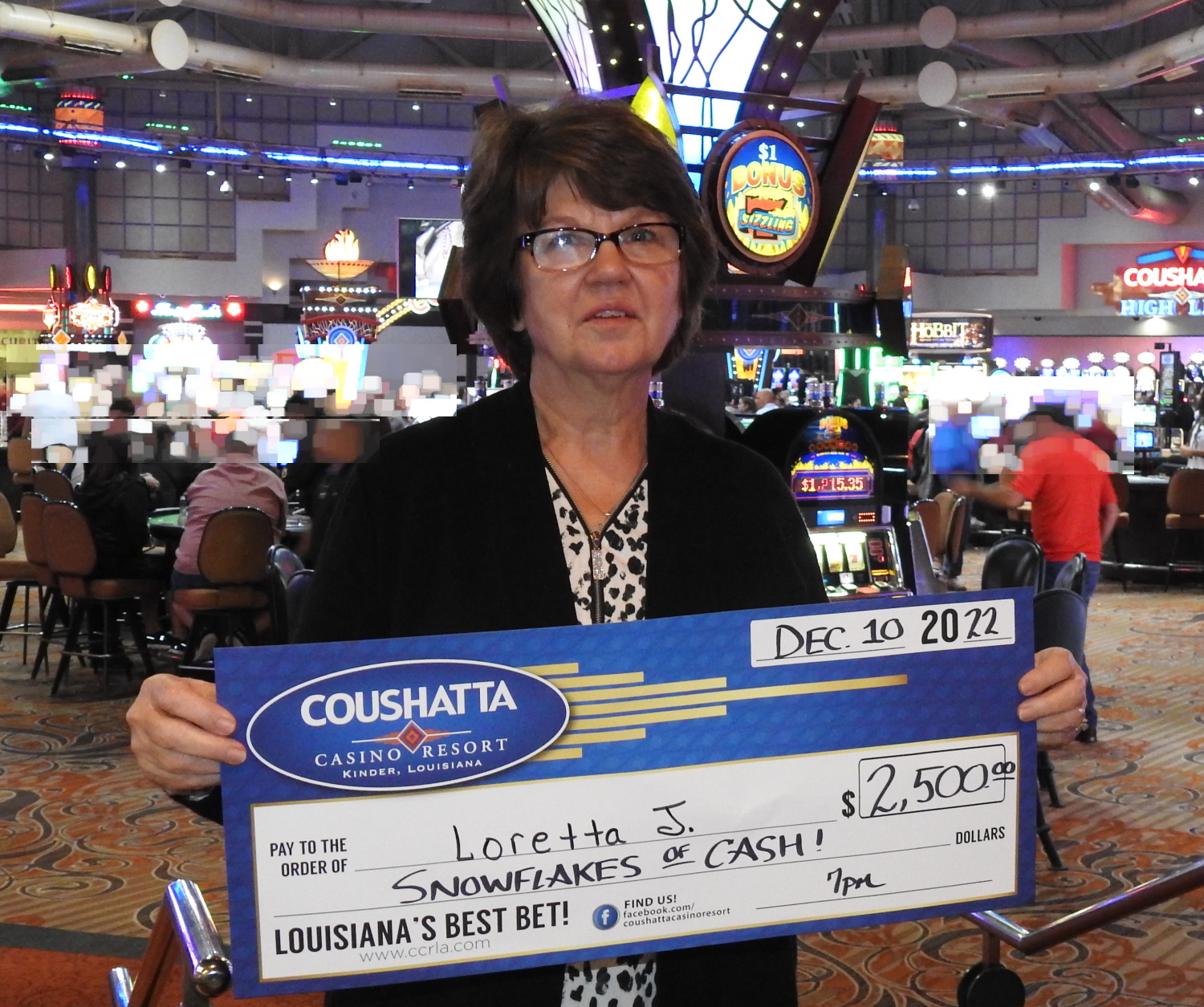 Congratulations to Loretta--on December 10, 2022 this lucky guest hit the jackpot while playing in the $120,000 Winter Snowflakes of Cash Giveaway and won $2,500!