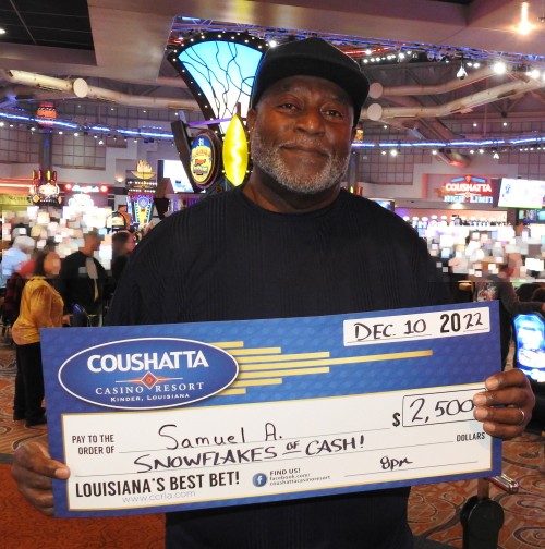 Congratulations to Samuel--on December 10, 2022 this lucky guest hit the jackpot while playing in the $120,000 Winter Snowflakes of Cash Giveaway and won $2,500!