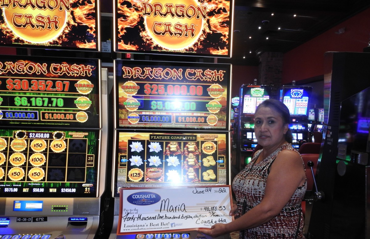 Congratulations to Maria--on June 24, 2022 this lucky guest hit the jackpot while playing the Dragon Cash slot game and won $40,180!!!