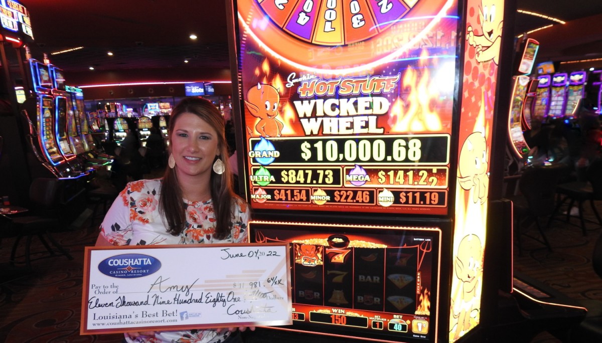 Congratulations to Amy--on June 4, 2022 this lucky guest hit the jackpot while playing the Hot Stuff Wicked Wheel slot game and won $11,981!!!