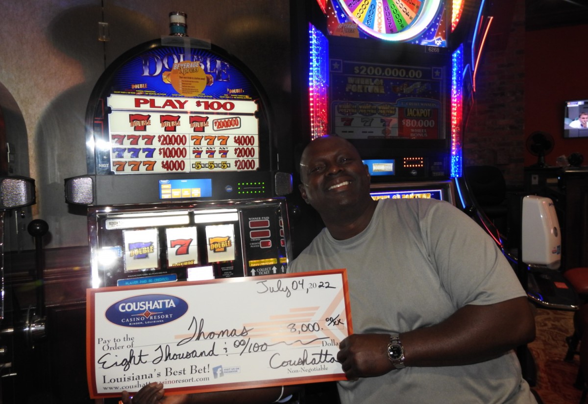 Congratulations to Thomas--on July 4, 2022 this lucky guest hit the jackpot while playing the Double Gold slot game and won $8,000!