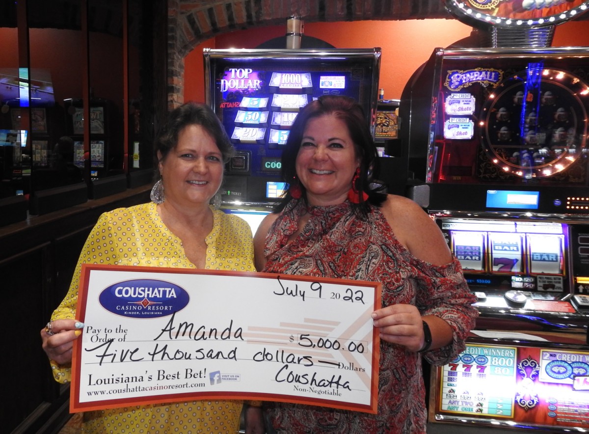 Congratulations to Amanda--on July 9, 2022 this lucky guest hit the jackpot while playing the Top Dollar slot game and won $5,000!