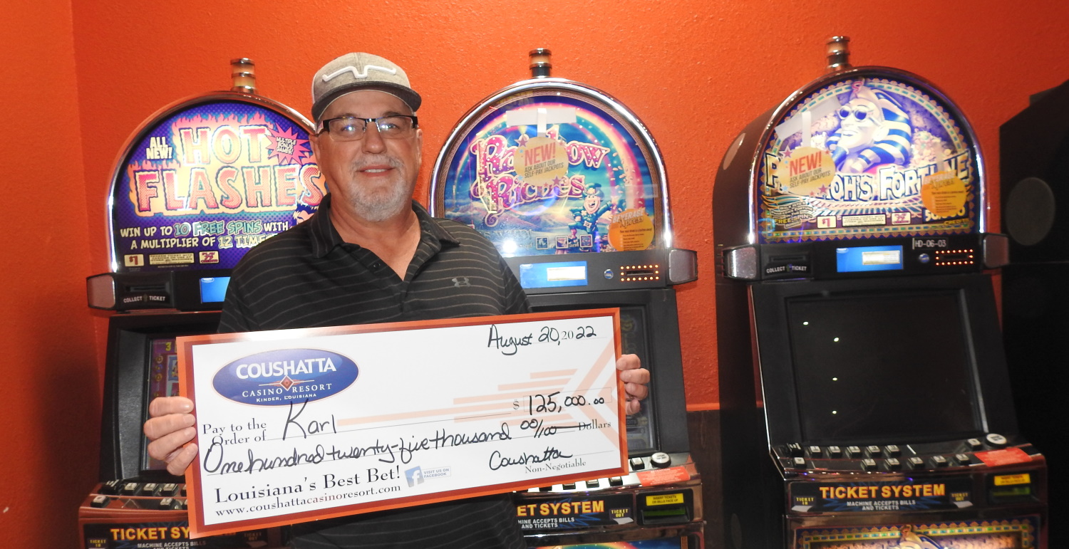 Congratulations to Karl--on August 20, 2022 this lucky guest hit the jackpot while playing the Rainbow Riches slot game and won $125,000!!
